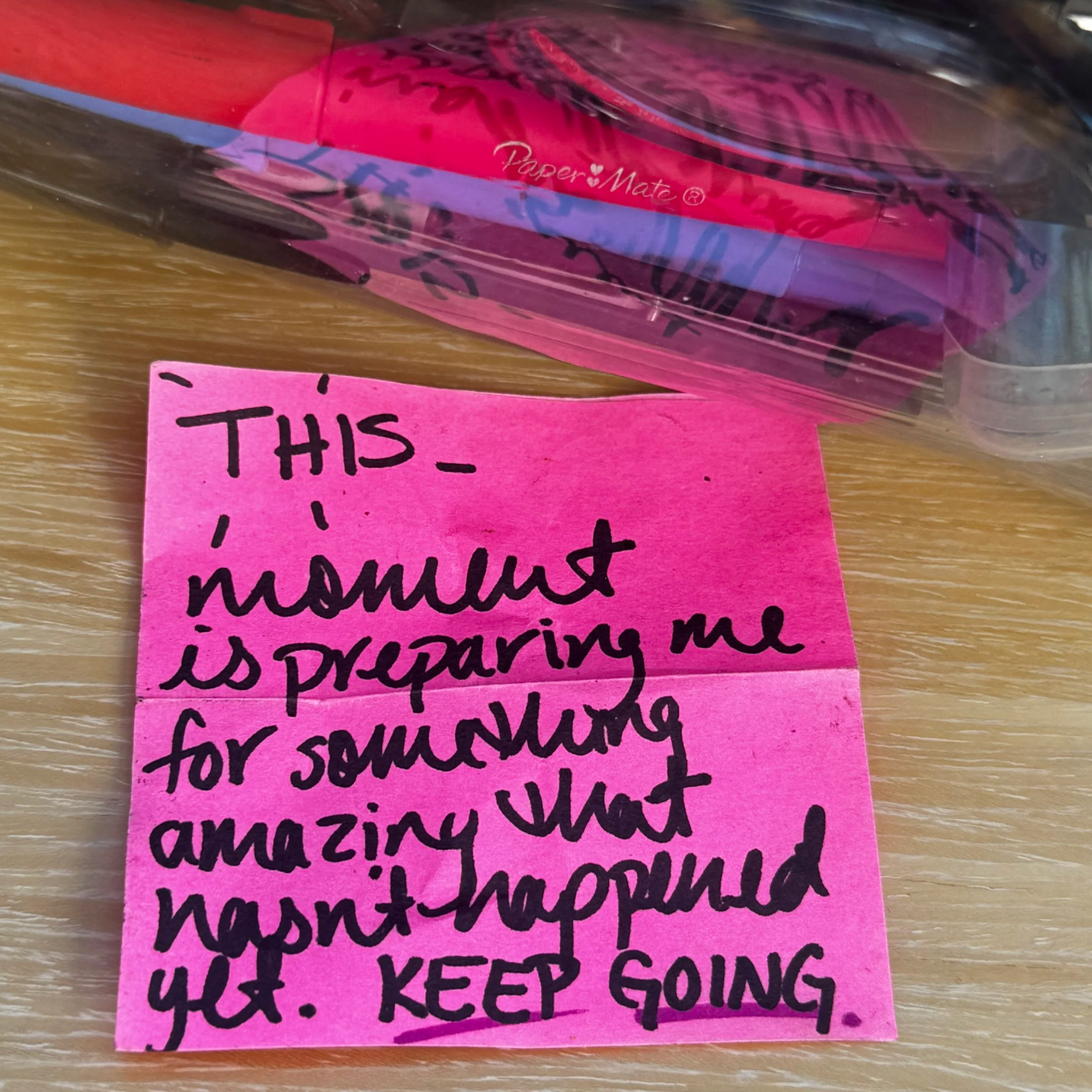 I wrote this post-it to myself so long ago that I really don’t remember what sparked this thought. It’s been smooshed at the bottom of my pencil case for at least 2 years. As I started to write today, I felt a pull to dig it out. I’m choosing to believe this today, and I’m sharing it with you just in case it feels supportive to you too. 👉👉👉